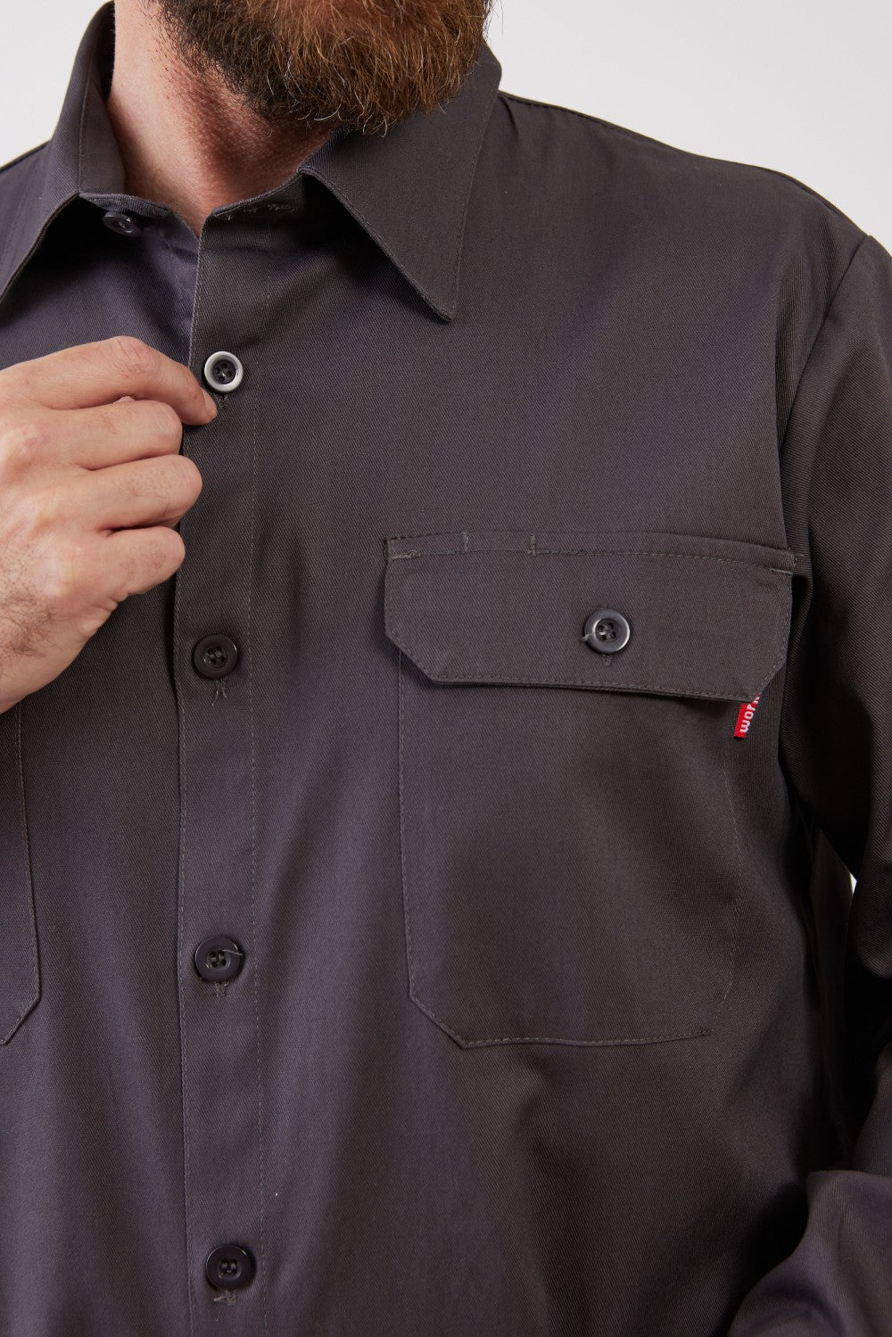 חולצת עבודה כותנה שרוול ארוך - אפור עכבר