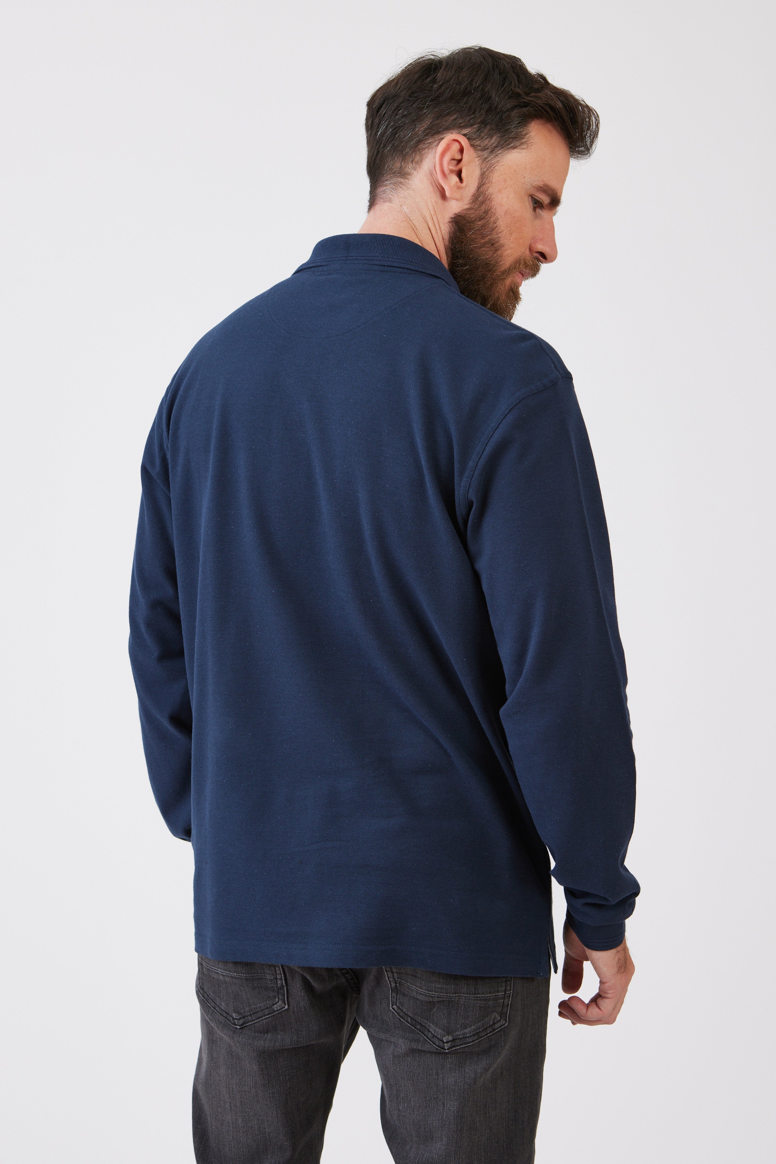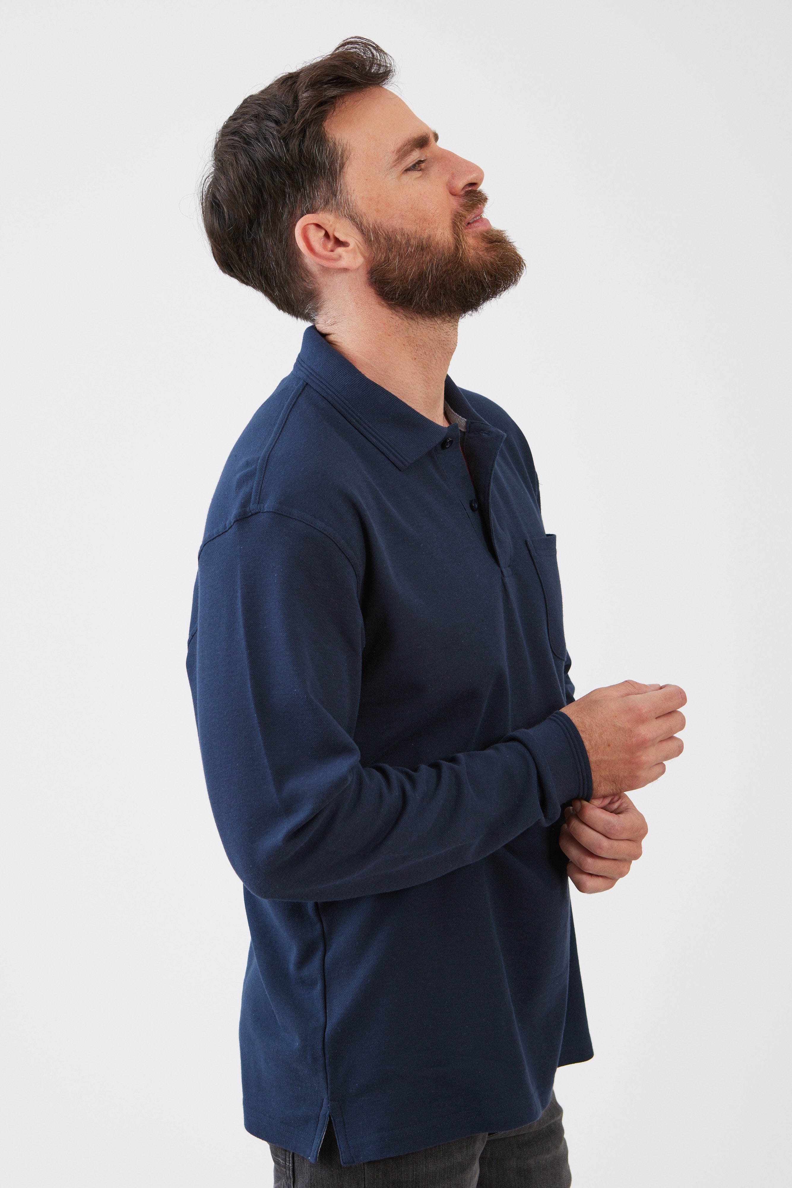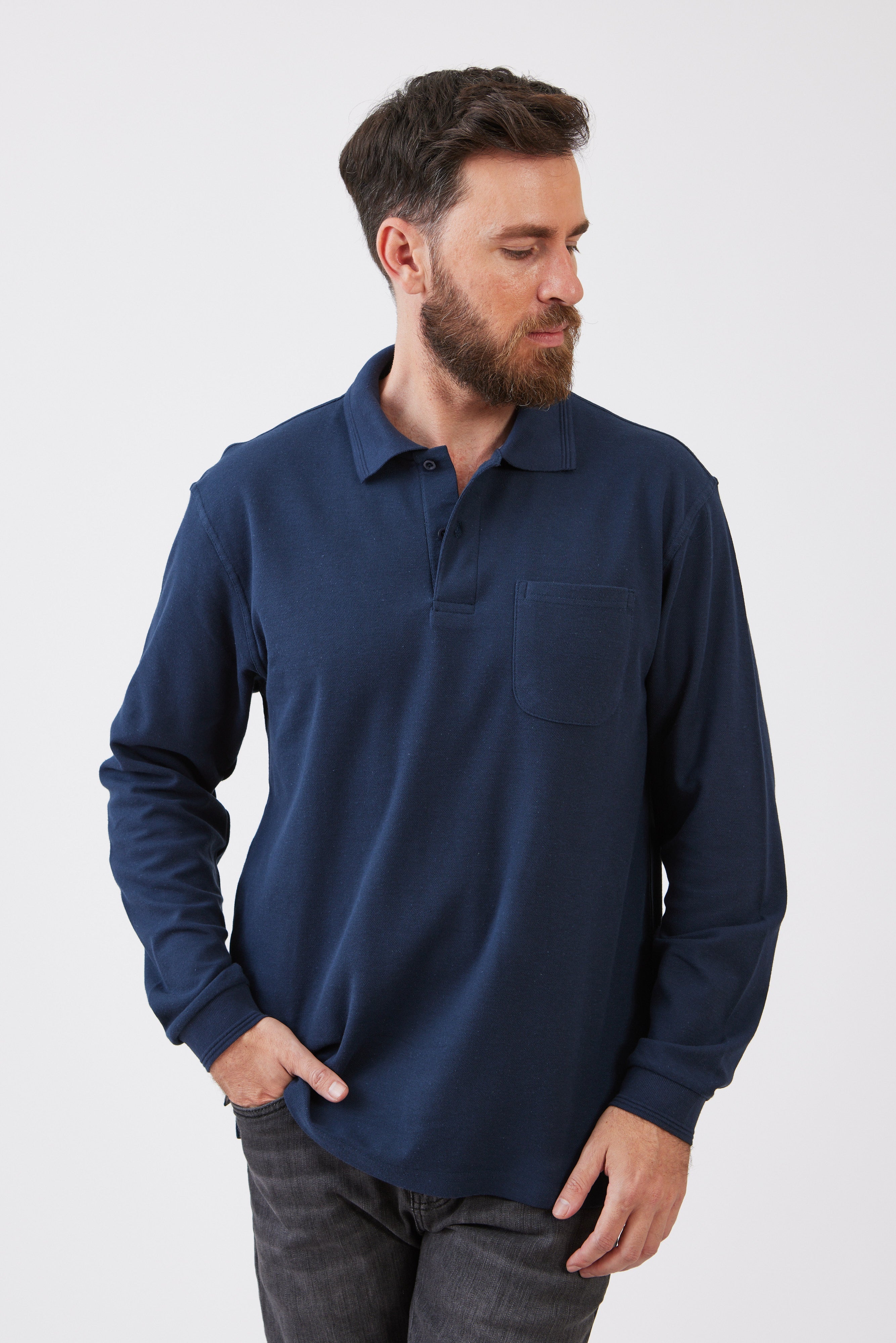 חולצת פולו שרוול ארוך עם כיס מידות גדולות - כחול כהה