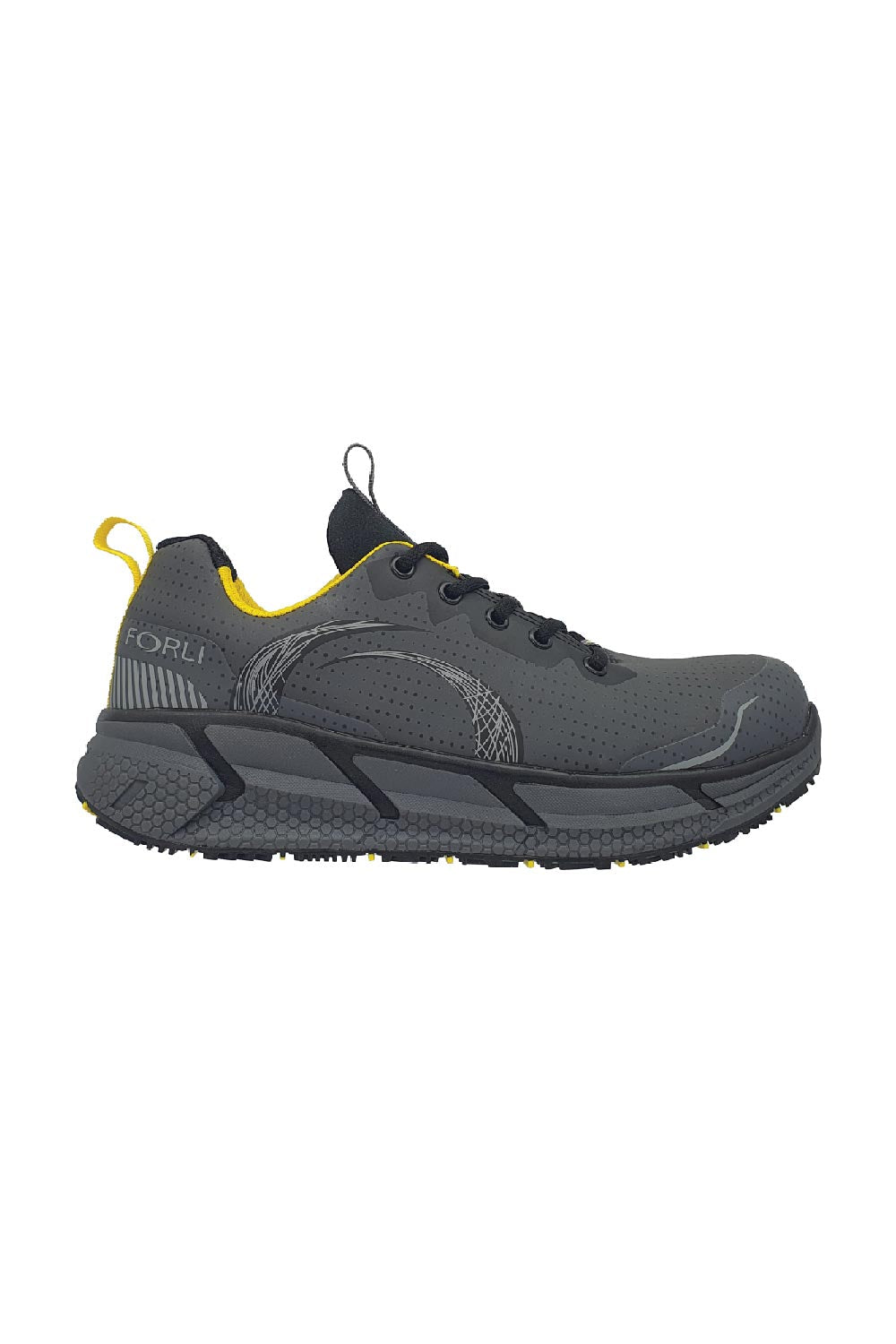 נעל בטיחות איכותית מבית FORLI ,בעיצוב ספורטיבי, המיועדת לסביבות עבודה קשות כגון תעשייה לוגיסטיקה, אוטומציה ומכונאות.