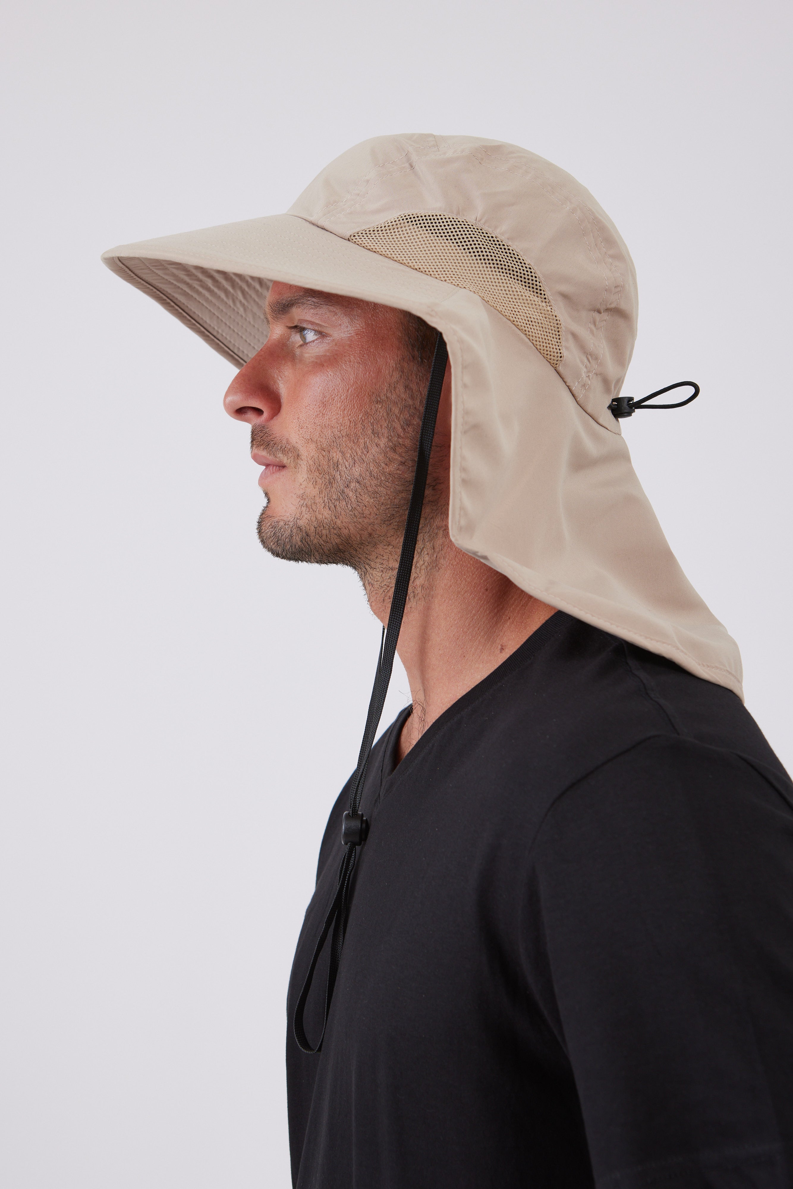 • מגן עורף רחב ורצועת מצח – להגנה מקסימלית מקרינת UV