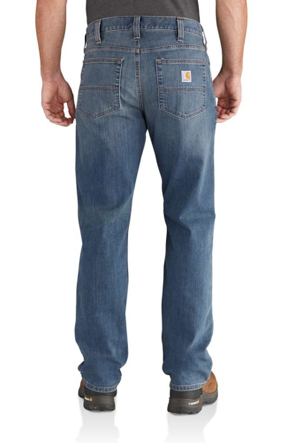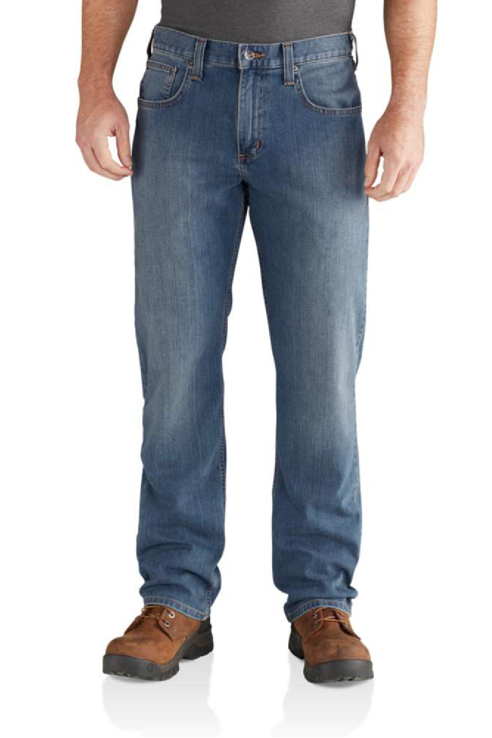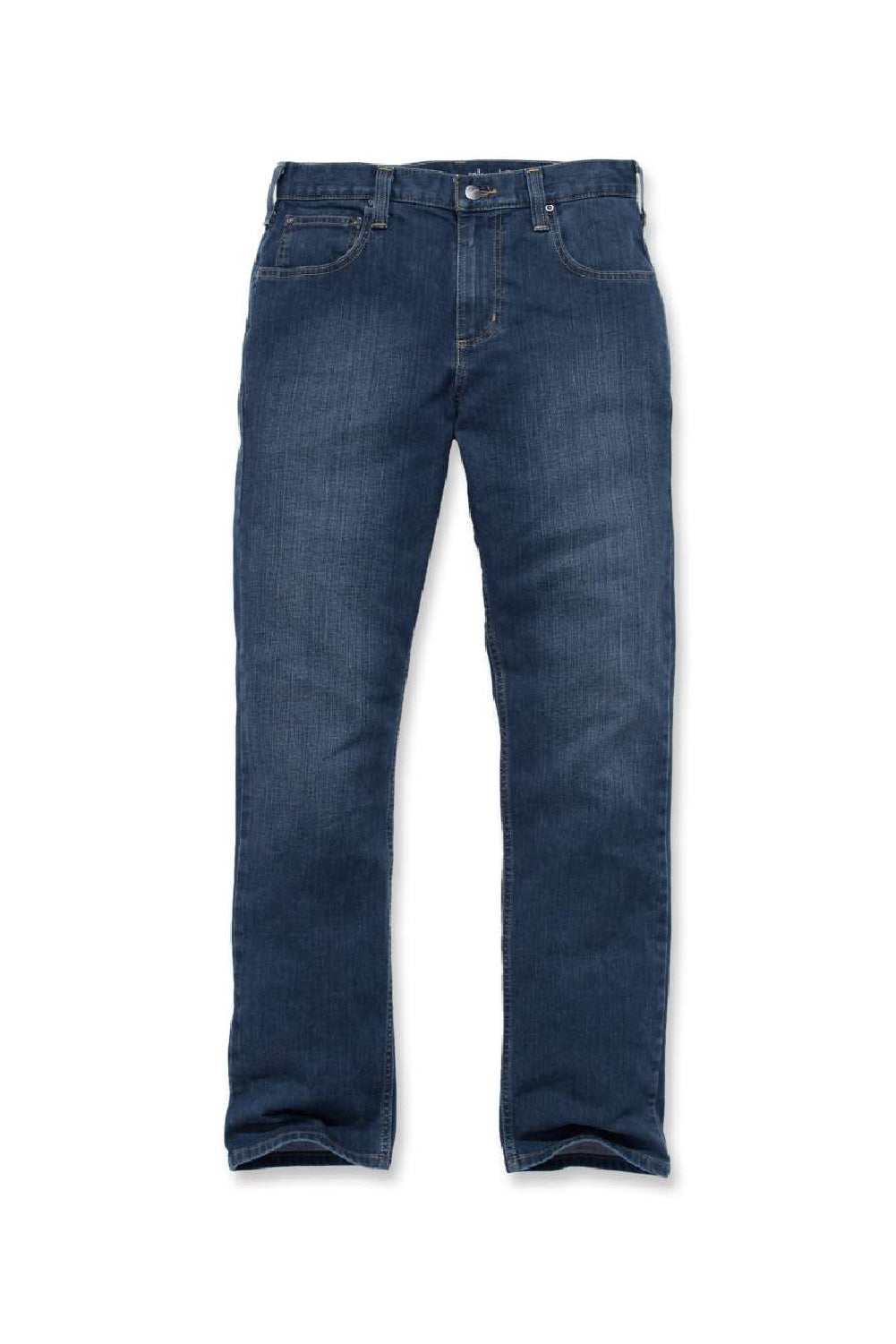 מכנס עבודה עמיד במיוחד מבית Carhartt, עשוי בד דנים כבד ואיכותי עם טכנולוגיית ®Rugged Flex המשלבת עמידות גבוהה עם חופש תנועה.