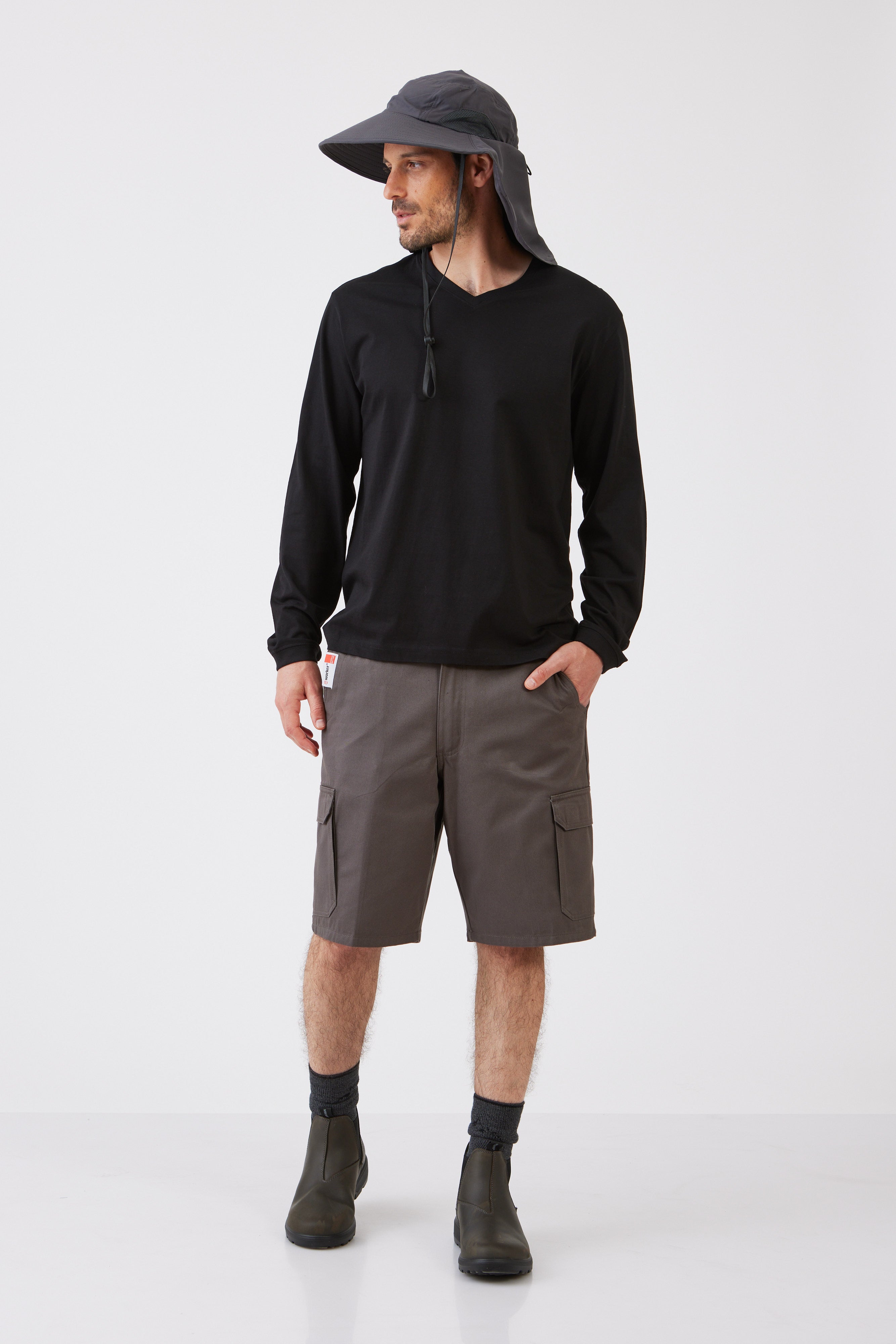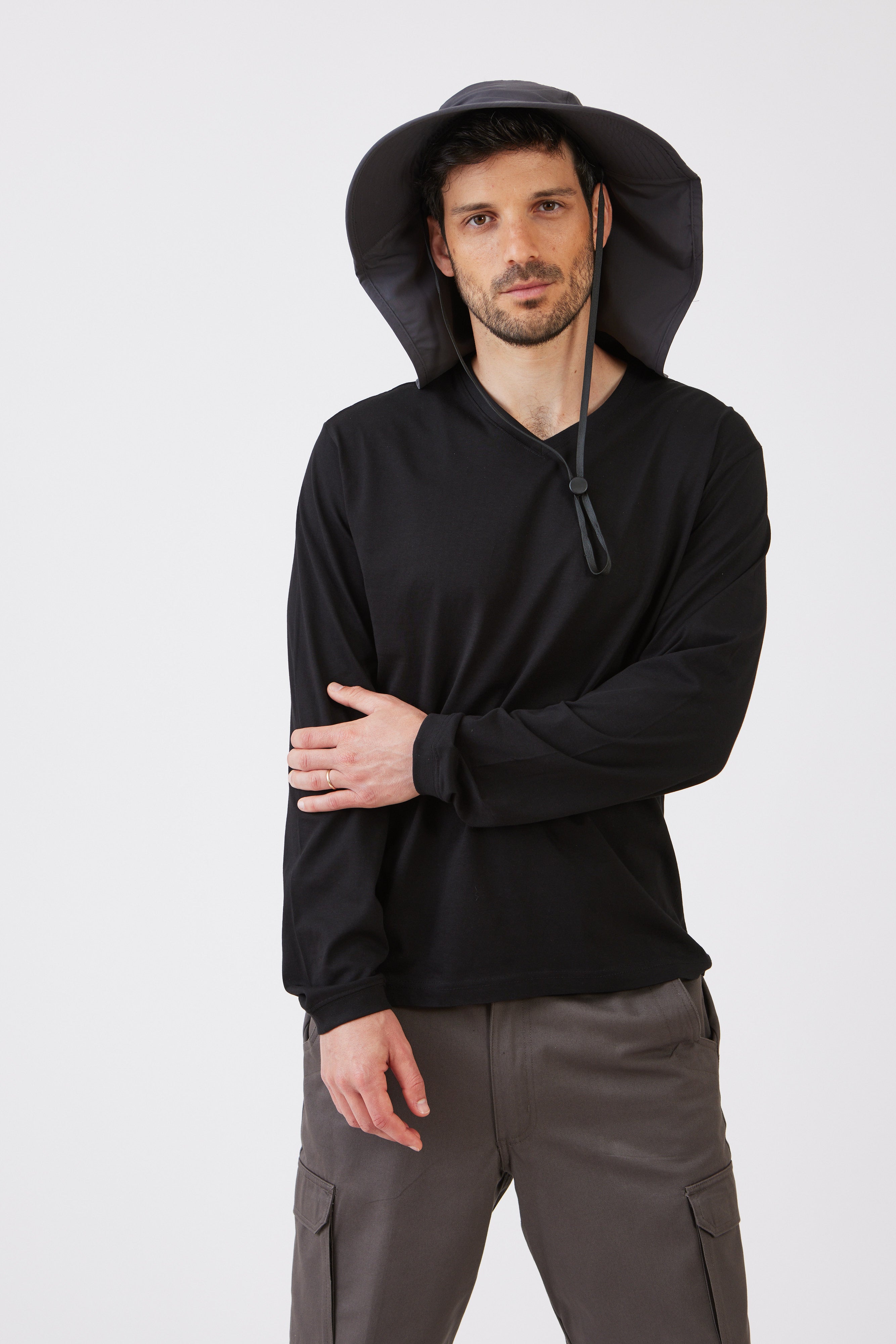 טישירט צווארון V שרוול ארוך - שחור