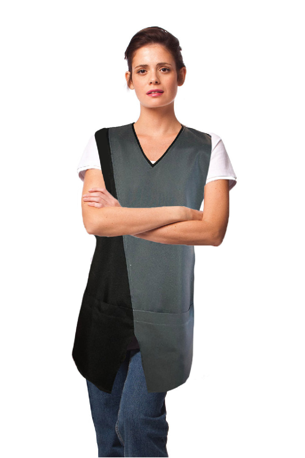 סינר מעטפת עם כיסים - אפור/שחור