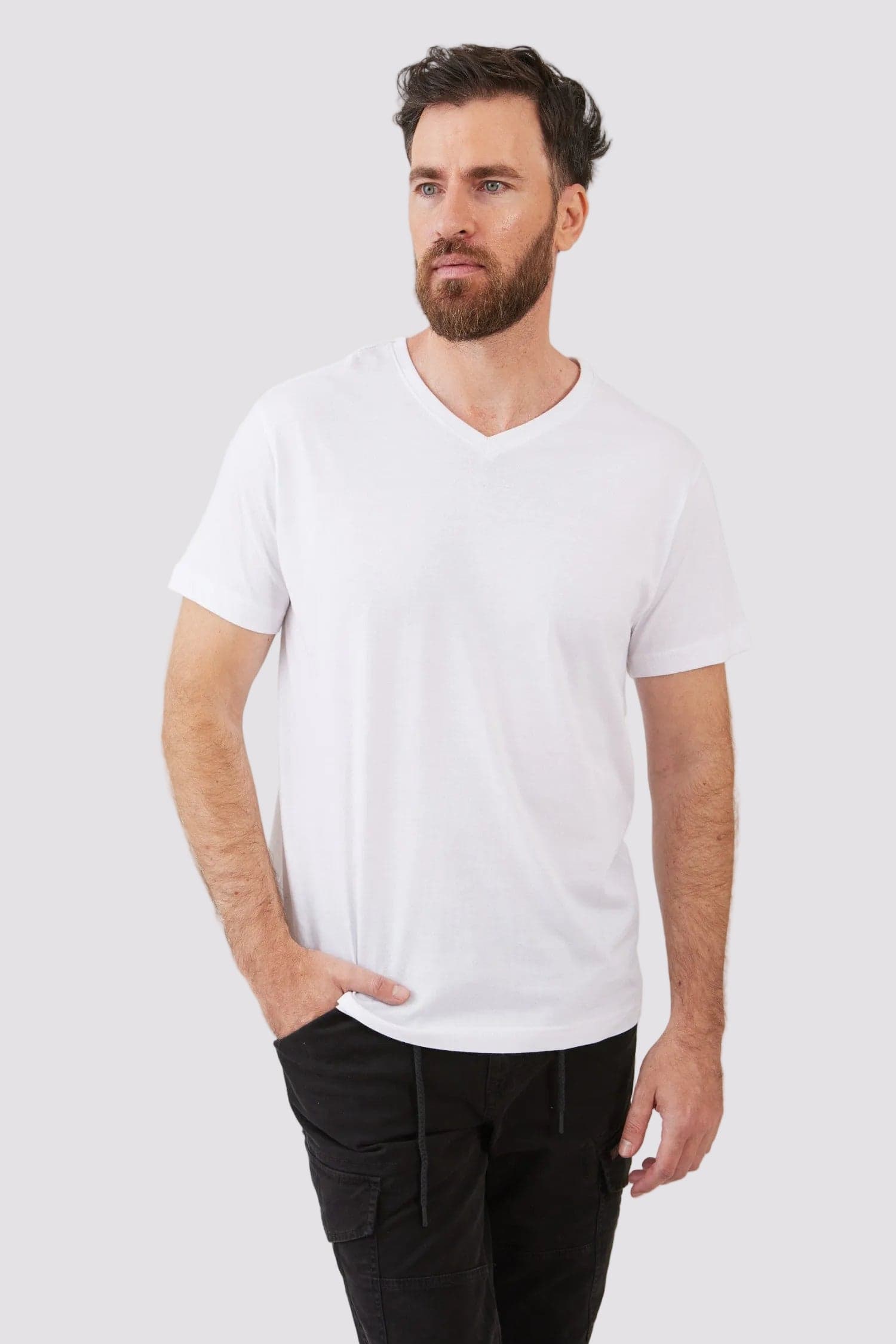 טישירט צווארון V - לבן