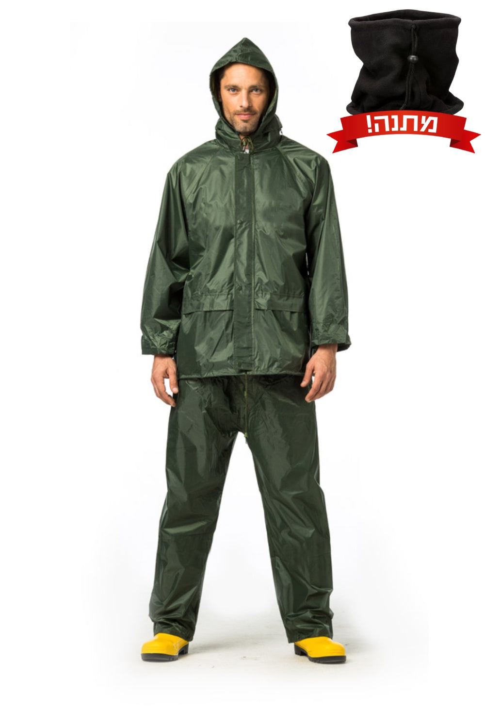 חליפת גשם ניילון - ירוק בקבוק (חם צוואר מתנה!) WORKER