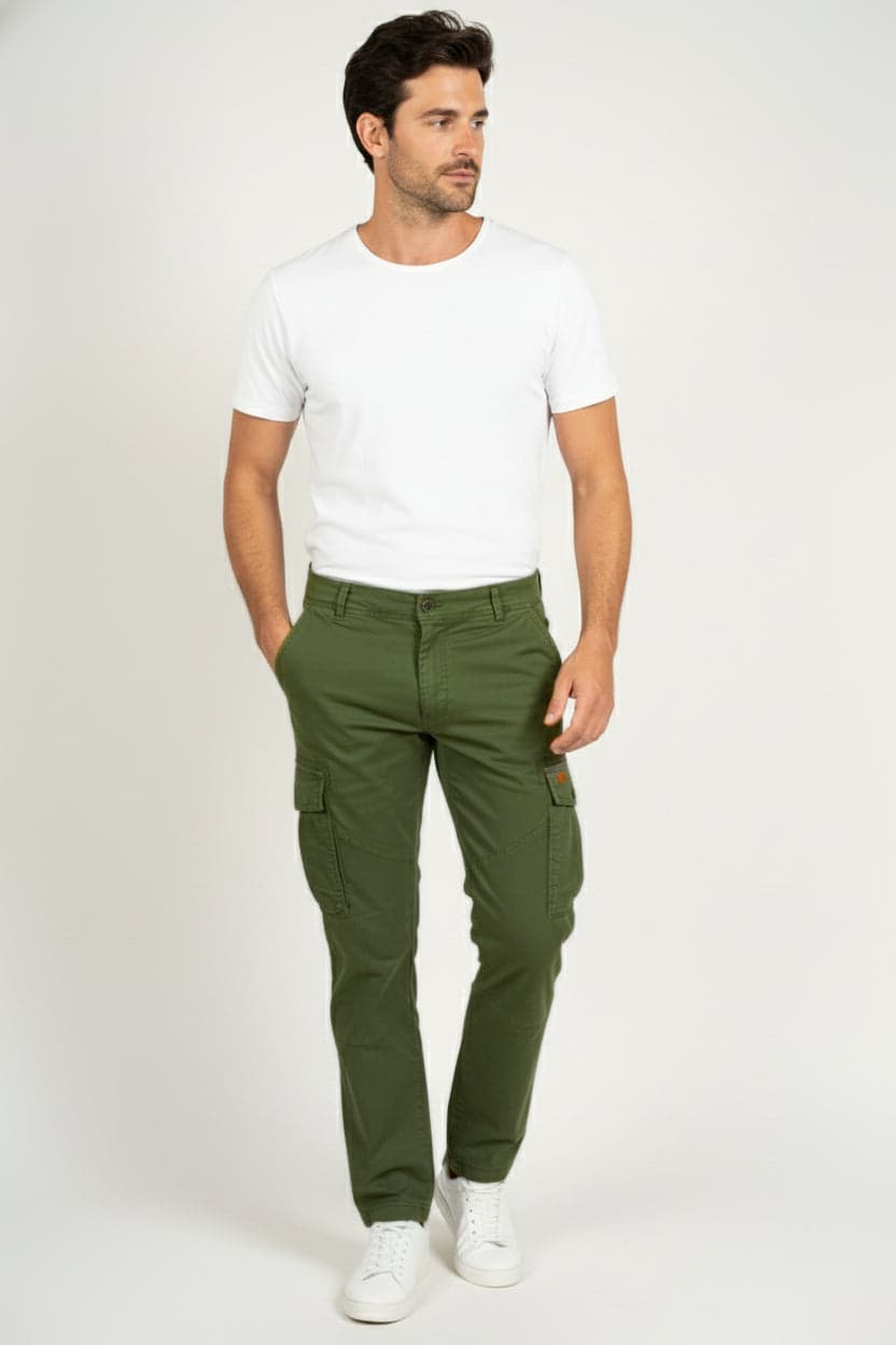 • עיצוב נוח עם כיסי קרגו נסגרים בכפתור ושני כיסי שפה אחוריים