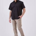 חולצה מכופתרת אלגנט שרוול קצר - שחור