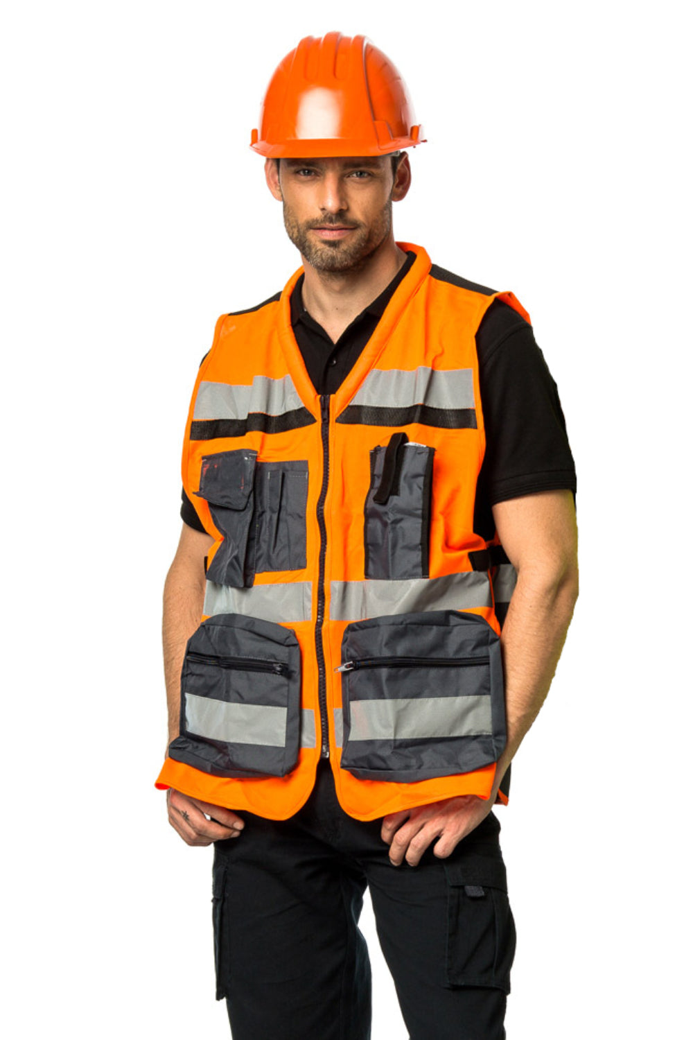 וסט קרגו כיסים ורוכסן - כתום - Worker